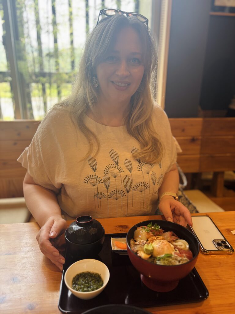 お天気にも恵まれ、海沿いの景色を楽しみながら、ランチは海鮮丼を食べて、ミラ先生は、人生で初めてのウニに大喜びでした〜!